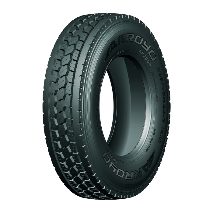 The Arroyo AR2000 features solid closed shoulders that promote even wear, low noise, and a wider tread. It also has three rows of siped independent tread blocks for improved wet grip and traction. The wide flat tread radius of the AR2000 increases contact to the road and even load distribution. Increased puncture protection and reinforced footprint is a result of the four pyramidical steel belts. The sidewall and steel belt of the AR2000 work together in reducing fatigue and extending casing life.